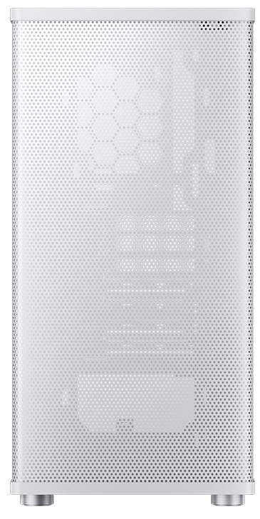 Передняя и боковые стенки представляют собою цельную конструкцию. Прозрачные стенки не предусмотрены, но установка компонентов с подсветкой все равно имеет смысл – она будет просвечиваться через множество сделанных отверстий.