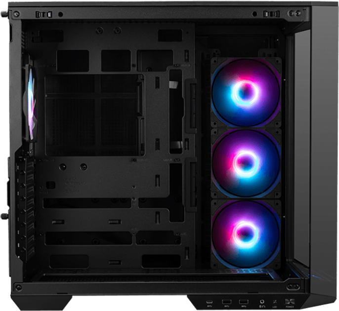 Предварительно установлены 3 вентилятора ARGB с обратными лопастями сбоку и 1 вентилятор ARGB сзади, что обеспечивает оптимальный поток воздуха, сохраняя приятный и чистый внешний вид.