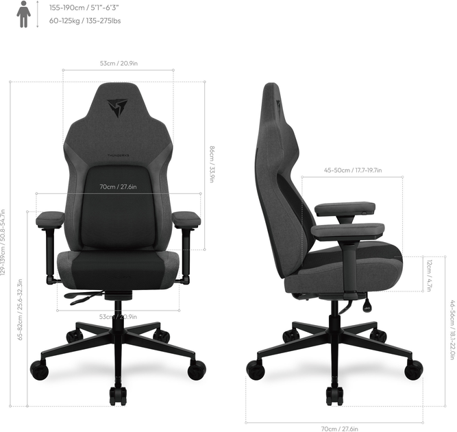 -       Описание      TX3 Core Smart — игровое кресло с металлическим каркасом. Максимальная нагрузка: до 125 кг. Основные технологии: поясничная поддержка CORE.RDY, многофункциональный механизм SYNC5 с пятисторонней регулировкой. Размеры сиденья: примерно 53 × (45‑50) × 12 см. Высота спинки: около 86 см. Вес модели: около 25,3 кг. Подлокотники регулируются, есть регулировка высоты сиденья. Цвет — светло‑серый. - * Характеристики и комплектация товара могут изменяться производителем без уведомления.
