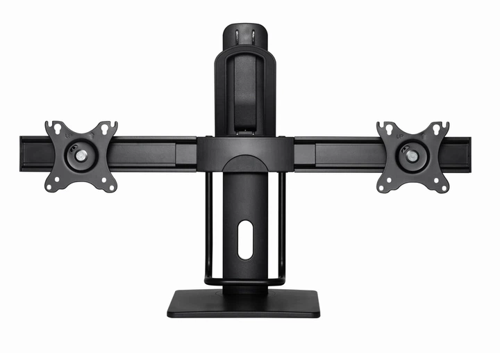 Регулируемый по высоте настольный кронштейн для двух мониторов.