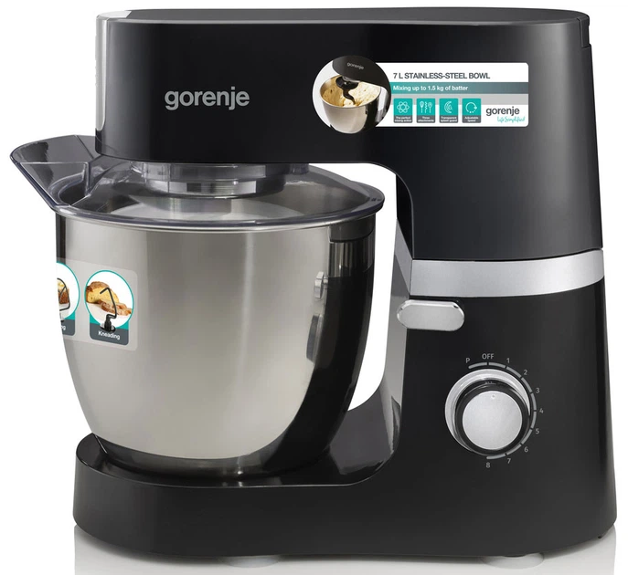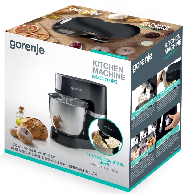 Кухонный комбайн Gorenje MMC1500PS – мощное и надежное устройство для смешивания и приготовления теста. Оснащен мотором мощностью 1500 Вт и металлическим редуктором, обеспечивающим стабильную работу даже с густыми смесями. Вместительная чаша из нержавеющей стали объемом 7 л позволяет замешивать до 1,5 кг теста. Имеет 8 скоростей и функцию плавного запуска двигателя. Корпус изготовлен из качественного пластика, а резинированные ножки обеспечивают стойкость во время работы. В комплект входят насадки – венчик, крюк для теста и мешалка. Крышка чаши оборудована отверстием для добавления ингредиентов. Размеры прибора: 412×373×266 мм, вес около 6,9 кг. Кухонный комбайн Gorenje MMC1500PS сочетает в себе мощность, удобство и стильный дизайн, подходит для ежедневного использования дома.