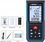 Лазерная рулетка (дальномер) Sndway H-D710A позволяет производить замеры до 70 метров. Она оснащена лазером красного света второго класса. Точность производимых измерений – до 2 мм. Эта модель имеет множество функций – это и площадь, объем, максимум и минимум, и измерение углов до 90 градусов. Также есть возможность измерить высоту на расстоянии благодаря расчетам на основе теоремы Пифагора. H-D710A обладает высокой степенью защиты – IP54. Данный показатель означает не полную водостойкость, но стойкость от брызг и пыли, мелких соринок.