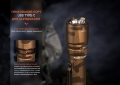 Цветовая температура генерируемого луча равна 6500К. Холодный белый свет характеризуется увеличенной дальнобойностью, которая в данной модели достигает почти полкилометра. Fenix TK20R UE имеет несколько полезных опций. Среди них есть защита от перегрева. Она срабатывает каждый раз, когда температура корпуса повышается до 60°C, и моментально снижает мощность света, чтобы нагрев не сказался на сроке службы электроники негативным образом. Также предусмотрено постепенное понижение яркости во время падения количества заряда в элементе питания.