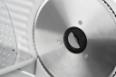 Дисковая ломтерезка в металлическом корпусе с большим лезвием и регулировкой толщины нарезки от 1 до 15 мм. Съемные детали обеспечивают легкую и быструю очистку