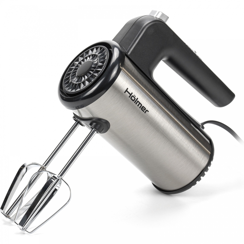 Модель Hölmer HHM-45 улучшенной эргономичной формы представлена в цвете металлик. Корпус миксера изготовлен из качественного пластика, а мощные венчики для взбивания и крюки для замешивания теста – хромированной стали.Мощность и продуктивность