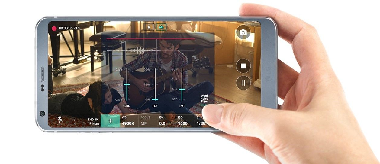 Получите объёмный, насыщенный, высококачественный звук с помощью двух микрофонов AOP и полночастотной звукозаписи LG G6.