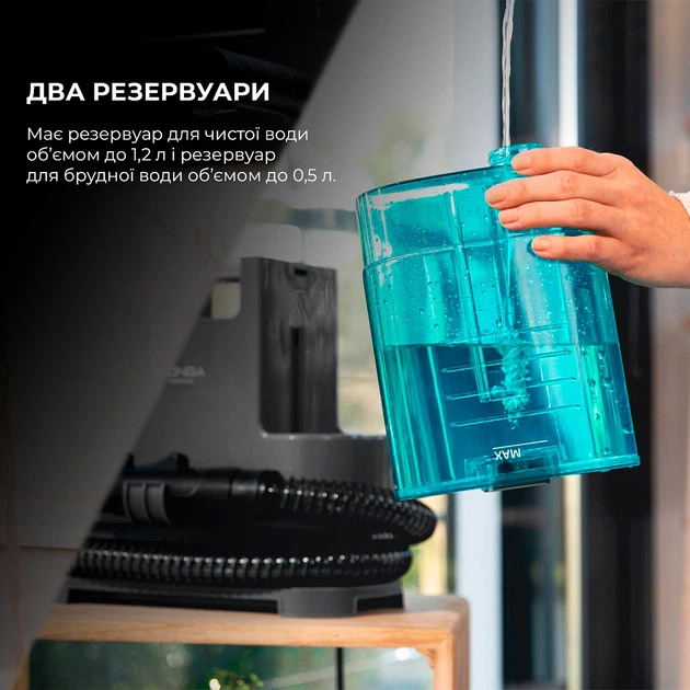 Cecotec Conga PopStar 3000 имеет резервуар для чистой воды до 1.2 литра и резервуар для грязной воды до 0.5 литра. Легко извлекается, чтобы можно было удобно наполнять и опорожнять, не теряя при этом эффективности уборки.