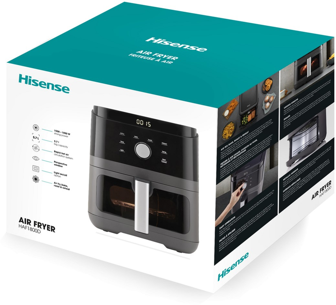 Аэрофритюрница — это универсальный кухонный прибор, который позволяет жарить, запекать, выпекать, сушить и разогревать пищу. Эта аэрофритюрница Hisense имеет простое ручное управление и чрезвычайно проста в использовании. Как только вы освоитесь, вы подсядете на жарку на воздухе!