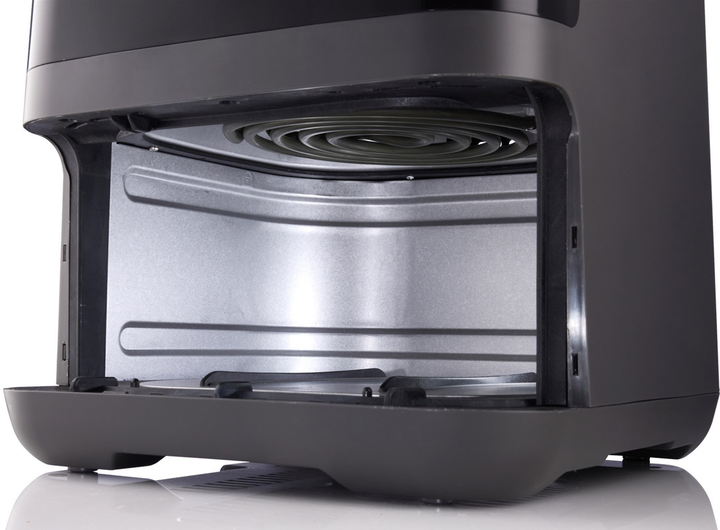 Внутренняя часть изготовлена из высококачественного металла, который предотвращает неприятный запах пластика. Он безопасен и долговечен. Свет, обогреватель и вентилятор расположены сверху и обеспечивают идеальное распределение тепла. Металлическая внутренняя часть позволяет легко чистить, и если это делать регулярно, единственным исходящим из фритюрницы запахом будет запах вкусной пищи.