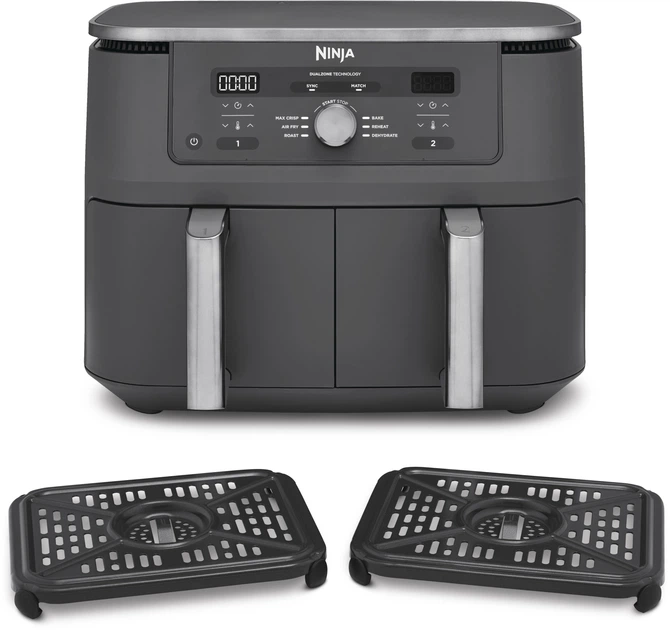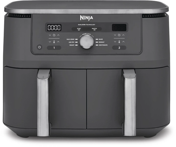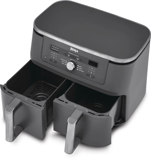 Встречайте новинку: мультипечь Ninja Air Fryer Dual Zone DZ400EU для быстрого приготовления вкусного ужина. Мощность 2470 Вт обеспечивает мгновенный старт, а две независимые чаши объемом 4,75 л позволяют одновременно готовить разные блюда с оригинальным ароматом. Общий объем 9,5 л дает возможность быстро накормить семью или подготовить праздничный ужин для гостей. Режимы MATCH и SYNC дарят больше контроля над процессом: одинаковые или синхронизированные по времени блюда получаются идеально пропеченными. Шесть программ охватывают все базовые потребности и открывают пространство для кулинарных экспериментов. Мультипечь готовит втрое быстрее обычной духовки, экономит электроэнергию и снижает использование масла, чтобы ваши рецепты оставались одновременно вкусными и легкими.