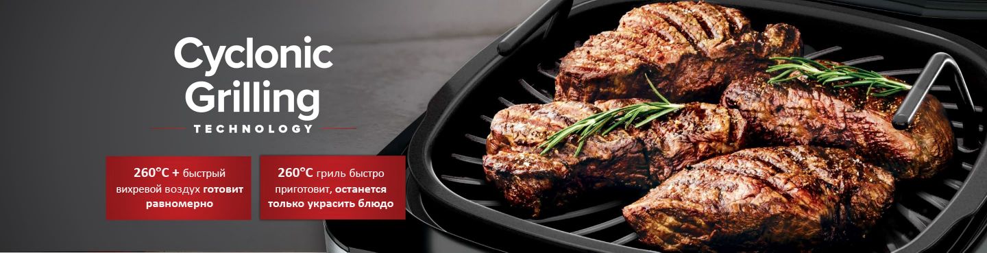Идеальная прожарка вашей пищи осуществляется благодаря уникальной технологии гриля Cyclonic Grilling. С ее помощью вам не нужно использовать много масла, кроме того продукты в процессе готовки будут сами терять ненужные жиры, именно поэтому, любое блюдо будет не только вкусным, а и очень полезным.Эксклюзивные функции
