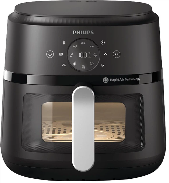 Простой и удобный сенсорный экран с 9 стандартными программами: замороженный картофель фри, свежий картофель фри, куриные голени, мясо, рыба, завтрак, овощи, пирог и хранение тепла.