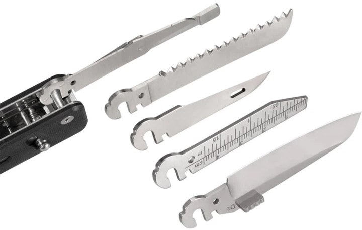 Мультитул Roxon Flex Companion S503G имеет уникальную особенность – модульную конструкцию . Вы можете собирать индивидуальный набор инструментов под собственные задачи: для города, велопоездки, ремонтных работ, кемпинга и рыбалки. В то же время в дизайне сохранена компактность, привычная для мультитулов карманного формата — всего 9 х 2.3 х 2.2 см в закрытом положении.