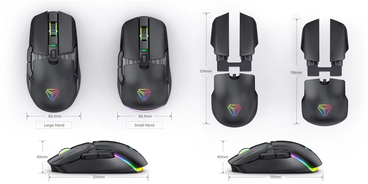 MARKSMAN — це модульна дротова ігрова миша зі змінними перемикачами та передньою і задньою верхньою кришкою. У комплект входить другий набір перемикачів, але можна використовувати будь-які перемикачі. У комплект також входять змінні кришки, один коротший набір і один довший набір для ідеальної відповідності до руки користувача.