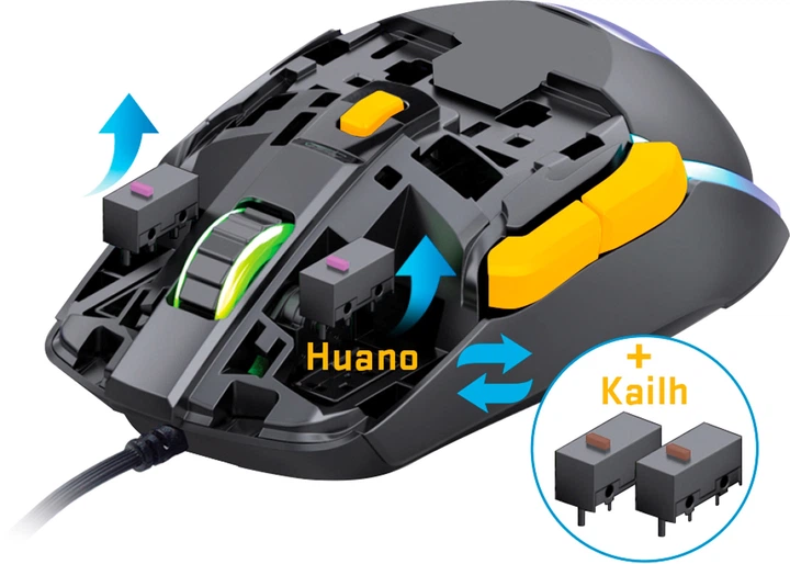 - Перемикачі: Kailh або змінні перемикачі Huano