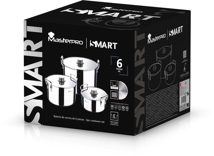 Набор кастрюль с крышками MasterPro Smart (BGMP-2145) изготовлен из нержавеющей стали.