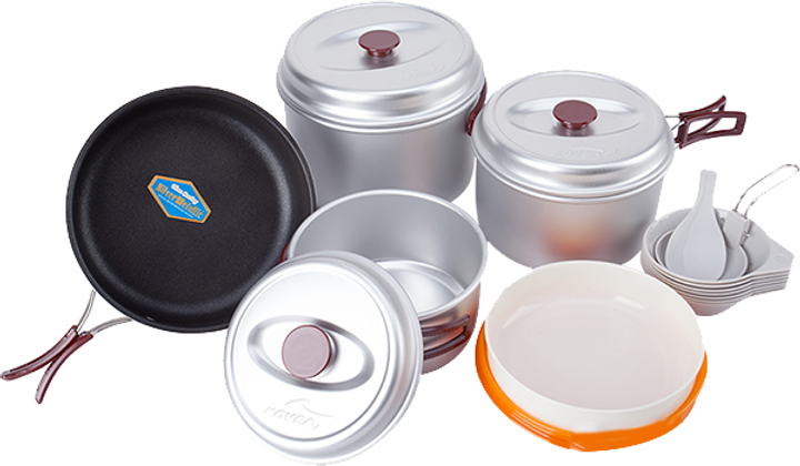 Набор посуды Kovea Silver 78 (на 7-8 человек) изготовлен из высококлассного алюминия с анодированным покрытием.