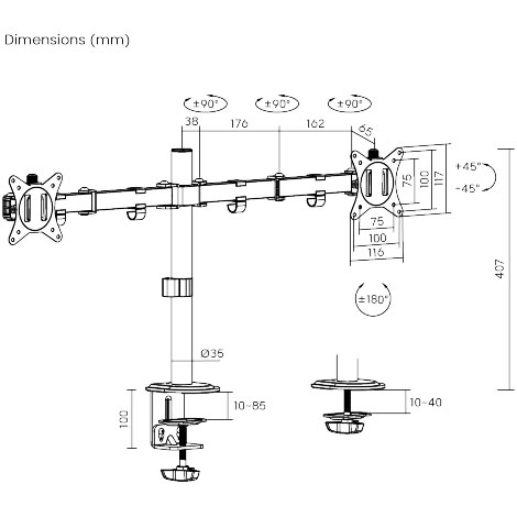 - Для мониторов и телевизоров с диагональю 13 — 27" и весом до 18 кг