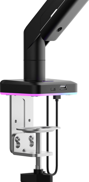 Также крепление оснащено интерфейсами type-c и USB-A, чтобы вы всегда имели дополнительную возможность подключения гаджетов для зарядки или синхронизации любой периферии с вашим ПК. А ценителей стиля обязательно обратят внимание на функцию RGB-подсветки, которой можно управлять с помощью сенсорной кнопки. Каждый найдет что-то для себя, чтобы подчеркнуть именно свой игровой сет-ап, ведь на выбор предлагается 31 режим подсветки.