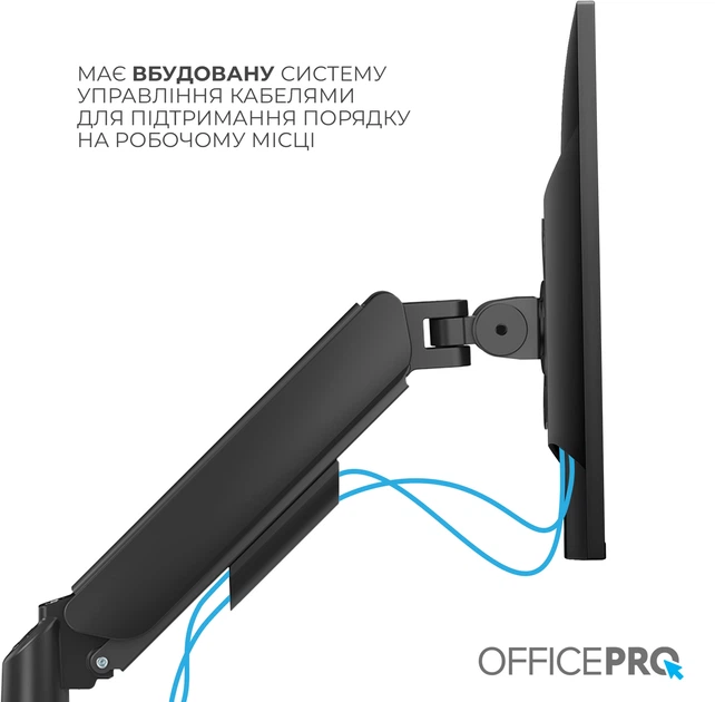 Officepro MA431B — это эргономичное решение, которое позволяет легко регулировать положение экрана для комфортной работы. Он подходит для мониторов с диагональю 17″–32″ и максимальным весом до 9 кг, обеспечивая стабильность и точную балансировку экрана. Конструкция на базе механической пружины гарантирует точное балансирование и лёгкую регулировку положения. Кронштейн обеспечивает плавный наклон (±90°), поворот (±90°) и полное вращение на 180°, что повышает комфорт и эргономику рабочего места. В основании конструкции расположены порты USB-A и USB-C, которые позволяют не только заряжать устройства, но и передавать данные непосредственно с рабочего места. Это значительно повышает удобство использования гаджетов и помогает сократить количество кабелей на столе. Кронштейн совместим со стандартами крепления VESA 75×75 и 100×100, что обеспечивает быструю установку и снятие монитора. Система управления кабелями дополнительно способствует порядку на столе и аккуратному виду рабочей зоны. Утончённый матовый корпус, выполненный из алюминия и стали, делает кронштейн не только надёжным, но и стильным дополнением к любому интерьеру. Благодаря передовым функциям и качественной эргономике, Officepro MA511B является одним из лучших вариантов по соотношению функциональности и стоимости.