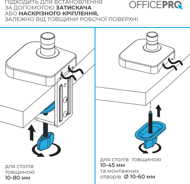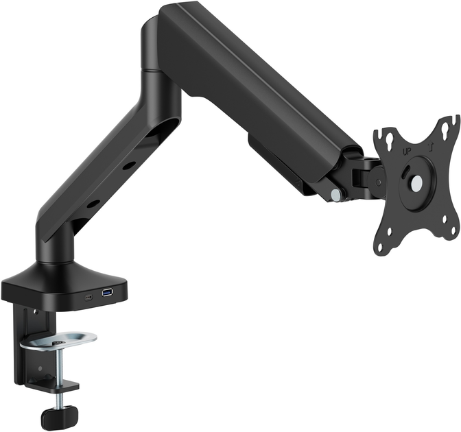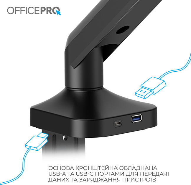 -       Описание      Officepro MA451B – это современное решение для эффективного размещения экрана, сочетающего функциональность, надежность и стильный дизайн. Подходит для плоских и изогнутых мониторов размером от 17 до 40 дюймов и весом от 2 до 12 кг. Идеально подходит как для офисного, так и домашнего использования. Корпус изготовлен из стали, алюминия и пластика. Регулируемая конструкция позволяет наклонять монитор в диапазоне ±90°, вращать на 180° и поворачивать влево/вправо на 90°, обеспечивая удобный угол обзора для любых задач. Крепление поддерживает стандарты VESA 75x75 и 100x100 мм. Монтаж возможен с помощью струбцины или сквозной крепи, что позволяет устанавливать устройство на столешнице толщиной от 10 до 80 мм. Благодаря встроенным портам USB 3.0 и Type-C вы получите быстрый доступ к зарядке или передаче данных прямо на рабочем месте. Органайзер для кабелей обеспечивает аккуратность и минимализм на столе. Это универсальное решение для комфортной и эргономичной работы на компьютере. - * Характеристики и комплектация товара могут изменяться производителем без уведомления.