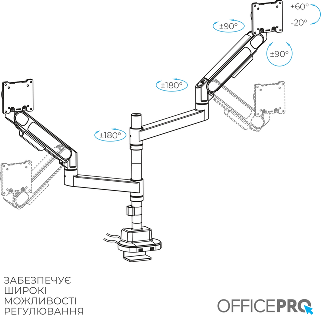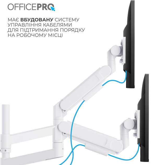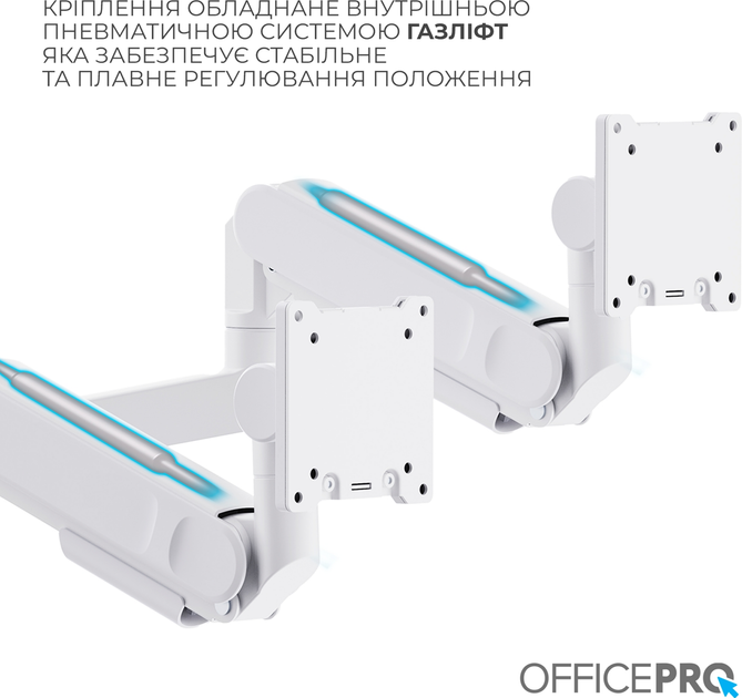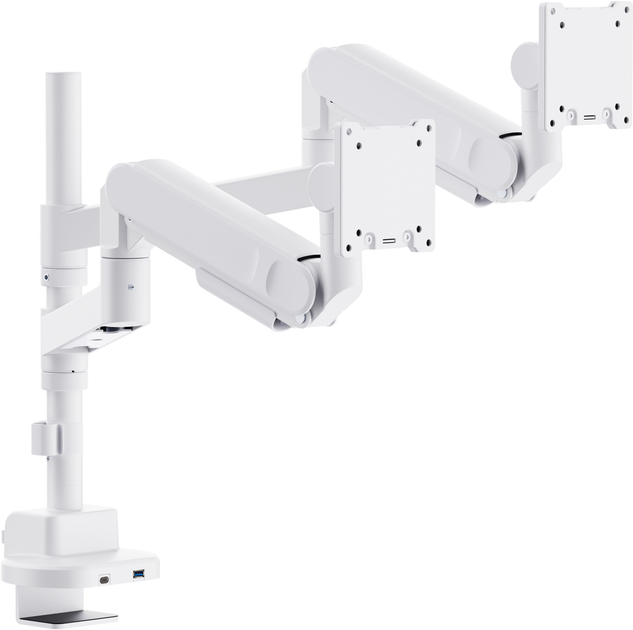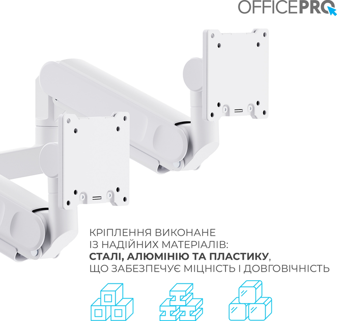 -       Описание      Крепление для мониторов Officepro MAH752W с пневматическим механизмом – это мощное и высокофункциональное решение для одновременного размещения двух больших мониторов. Идеально подходит для рабочих станций с повышенными требованиями к пространству и гибкости. Поддерживает мониторы с диагональю от 24 до 57 дюймов, в том числе изогнутые, с максимальным весом до 27 кг на каждый экран (до 22 кг для изогнутых). Благодаря использованию пневматического механизма (газлифт), крепление обеспечивает плавную регулировку положения экранов без лишних усилий. Диапазон наклона составляет от -20° до +60°, поворот – ±90°, вращение – ±90°. Крепление совместимо с широким диапазоном VESA-стандартов: 75x75, 100x100, 100x200, 200x100 и 200x200, что обеспечивает универсальность в использовании с разными моделями дисплеев. Монтаж возможен с помощью струбцины или сквозной крепи на столешнице толщиной от 10 до 50 мм. Удобная система скрытой прокладки кабелей обеспечивает аккуратность рабочего пространства, а наличие USB 3.0 и Type-C портов позволяет быстро подключать периферию или заряжать устройства. Крепление оснащено быстросъемной VESA-пластиной, что значительно упрощает установку мониторов. Это идеальное решение для тех, кто работает с большими дисплеями и ценит эргономику, надежность и техническое совершенство. - * Характеристики и комплектация товара могут изменяться производителем без уведомления.