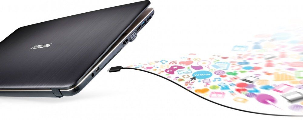 Ноутбуки ASUS серии VivoBook Max оборудованы разъемами USB 3.0 Type-C, HDMI и VGA, а также считывателем карт SD/SDHC/SDXC для полной совместимости с широким спектром периферийных устройств. Компактный разъем USB Type-C имеет специальную конструкцию, которая позволяет подключать USB-кабель к ноутбуку любой стороной. Этот порт работает на скорости до 5 Гбит/с, то есть в 10 раз быстрее, чем USB 2.0. Это означает быструю передачу больших объемов информации, например видеофайлов.
