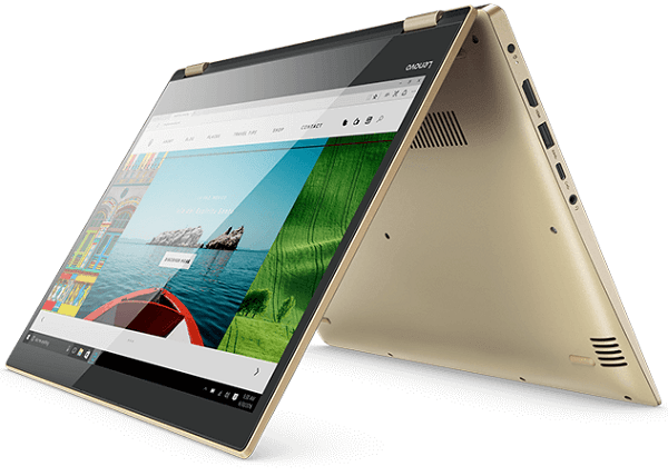 Модель Lenovo Yoga 520 имеет элегантный алюминиевый корпус, выполненный в следующих расцветках: серый гранит, черный оникс, золотистый металлик. Четко очерченные скошенные края выглядят лаконично и современно, а обновленная сенсорная панель обеспечивает комфорт и улучшает управление устройством.ГИБКАЯ КОНСТРУКЦИЯ С ШАРНИРНЫМ МЕХАНИЗМОМ ПОВОРОТА НА 360 ГРАДУСОВ