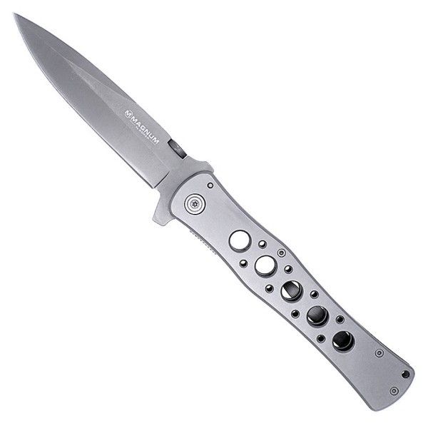 Модель Boker Magnum Urban Tank демонстрирует нож с весьма привлекательным дизайном. Благодаря отверстиям в рукоятке, нож надежно лежит в руке в любой ситуации. Клинок из стали 440 легко открывается одной рукой с помощью шпенька или инерционно – за счет небольшого выступа-гарды. Обработка клинка – сатинирование. На рукояти есть клипса и отверстие для темляка.