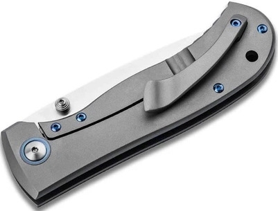 Выдающейся изюминкой данного ножа является его двухкомпонентная накладка рукоятки. Передняя часть накладки выполнена из материала FAT Carbon и имеет неповторимый узор «Черные дюны», в то время как задняя часть изготовлена из углеродного волокна и имеет непревзойденную текстуру «Космический коралл». Осевое кольцо и винты, изготовленные из титана с анодированием синего цвета, придают яркие акценты и гармонично дополняют дизайн. Boker Plus Collection 2024 оснащен стильной карманной клипсой, выточенной из цельного куска титана. На торце рукоятки расположено отверстие под темляк или ремешок.
