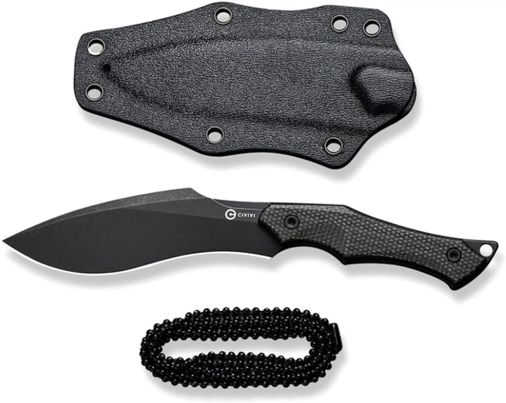 Нож отличается прочностью, поскольку имеет цельнометаллическую конструкцию (фултанг), а клинок в форме кукри наделяет его универсальностью в эксплуатации, облегчая как рез, так и прокалывание различных материалов.