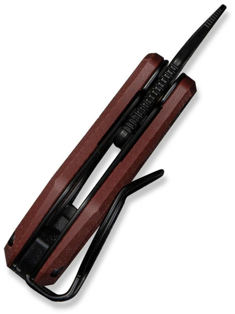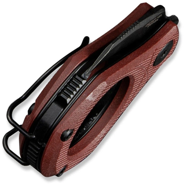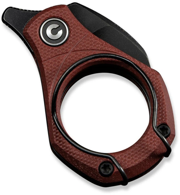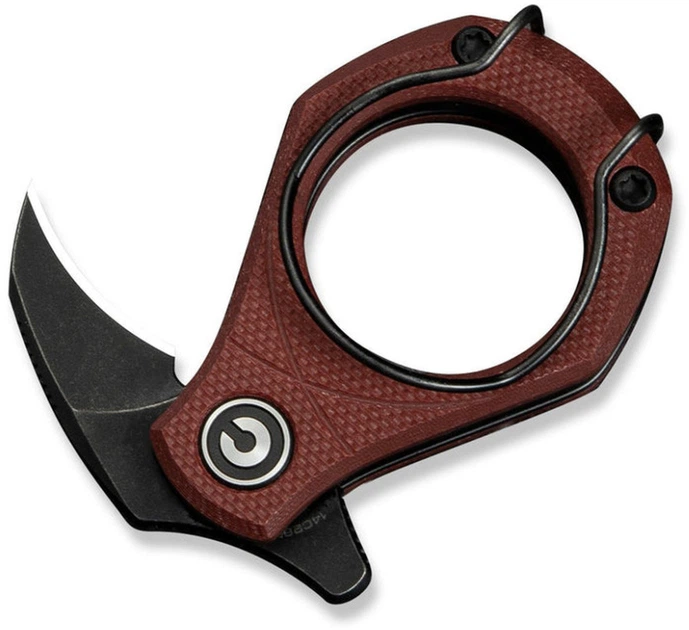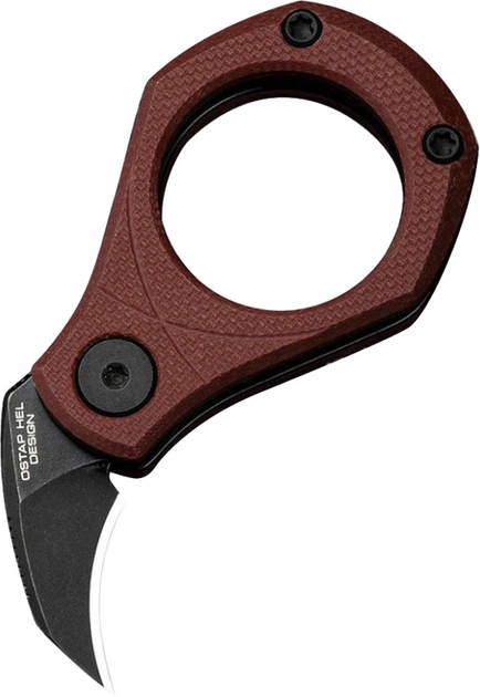 - Круглой G10-рукоятью повышенной эргономики с шероховатой поверхностью и многофункциональной карманной клипсой (может использоваться в какчестве зажима для денежных купюр, кольца для ношения складного мини-ножа в качестве брелока) - комфортна для руки при захвате и удержании, невосприимчива к механическим повреждениям.