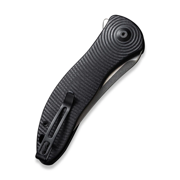 Этот инструмент выпускается под дочерним брендом Civivi и является более доступной альтернативой знаменитому ножу. Его характерная черта – форма клинка trailing point, предназначенная для резки материалов малой и средней плотности. Поднятое острие также подходит для осуществления проколов, а толщина обуха 3 мм предотвращает деформирование клинка. На финальном этапе производства клинок подвергся галтовке stonewash, которая придала блестящему металлу матовость, скрывая мелкие царапины на поверхности. Разновидность замка nested liner lock — гарант безопасной эксплуатации ножа. Это линейный запорный механизм, отличающийся простотой как в использовании, так и в уходе. Осевой узел на керамическом шарикователе позволяет открывать нож-флипер с максимальной скоростью. Конструкцию можно украсить с помощью темляка, продернутого в специально отведенное для него отверстие в хвосте рукоятки. Вес модели составляет 101.9 граммов с учетом двухпозиционной клипсы Tip-Up из стали. 1009_