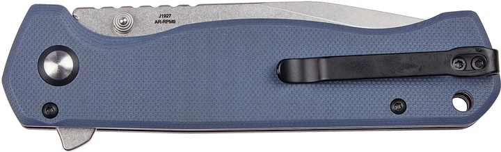 - Характеристики КлассификацияТипВидГабариты, Цвет, ВесДлина клинка88 ммЦветСерыйОбщие характеристикиТвердость клинка59-61 HRCНожны/чехолЧехолТип замкаLiner lockПоверхность клинкаStonewashГарантияГарантия: 3 месяцаМатериалыМатериал клинкаAR-RPM9