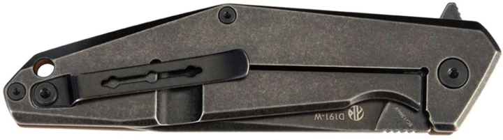 Складная конструкция ножа Ruike D191 имеет минималистичный дизайн, универсальный для комфортного использования инструмента как в городской среде, так и в полевых условиях. Одно из преимуществ модели - наличие роликовых подшипников в осевом узле, что улучшает плавность хода лезвия. Кроме того, нож изготовлен из износостойких материалов, выдерживающих высокие нагрузки. В производстве клинка применена нержавеющая сталь 8Cr13MoV, которая характеризуется отличным удержанием заточки, простотой в обработке и высокой агрессивностью резания, особенно по материалам малой и средней плотности. Благодаря криогенной обработке твердость марки находится в диапазоне 57-59 HRC. На рукоятке закреплена одна накладка из стеклопластика G10, что повышает удобство удержания конструкции. G10 относится к категории особо прочных композитов и не боится регулярных температурных перепадов, механического воздействия и контакта с водой или агрессивными средами, как соли, кислоты и бензин. Противоположная сторона рукояти изготовлена из невосприимчивой к ржавлению стали 420. И клинок, и стальная сторона рукояти обработаны методом black stonewash (галтовки). В результате металл приобрел легкую матовость и скрывает отпечатки пальцев. Длина клинка достигает 92 мм. Для его открывания предназначен плавник флиппера, а для фиксации - замок Frame lock. На обухе толщиной 3.5 мм находится ребристый упор для большого пальца, облегчающий выполнение особо сложных задач, где требуется применение большой физической силы. В открытом положении модель достигает 219 мм в длину. При этом ее вес не превышает 120 г с учетом съемной клипсы из стали. Носить нож можно любым удобным способом, фиксируя на лямке рюкзака, кармане одежды или на поясе. Конструкцию также можно украсить темляком - для него предусмотрено сквозное отверстие в хвостовой части рукояти.