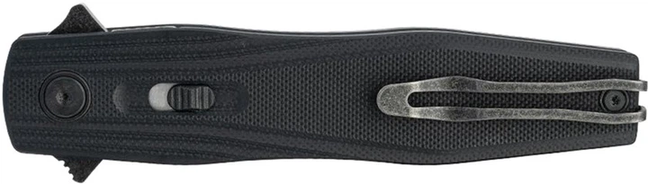 - Характеристики Габариты, Цвет, ВесОбщая длина214 ммТолщина клинка3.1 ммДлина клинка91 ммВес106 гЦветЧерныйКлассификацияТипВидМатериалыМатериал рукоятиМатериал клинкаD2Общие характеристикиТвердость клинка59-61 HRCТип замкаLiner lockПоверхность клинкаBlackWashПримечаниеНожи с клинком длиной до 90 мм и/или толщиной до 2.6 мм не относятся к холодному оружию в соответствии с «Методикой криминалистического исследования холодного оружия и конструктивно схожих с ним изделийГарантияГарантия: 12 месяцев