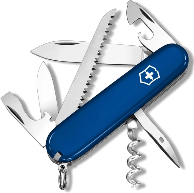 Нож Victorinox CAMPER Vx13613.2 - швейцарский складной нож. Удобный, практичный, оптимального среднего размера. Материал лезвий - нержавеющая сталь. Рукоять покрыта специальным пластиком, цвет - синий. Нож оснащен 11 предметами, выполняющими 13 функций. Среди них - два лезвия, две открывалки (для бутылок и консервы), штопор, шило, отвертка, пила, зубочистка и пинцет, кольцо для ключей. Размеры - 91мм.