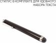 Обложка черного цвета от AIRON отлично сочетается с приятной на ощупь, невероятно легкой клавиатурой. Компактное дополнение прикреплено к аксессуару при помощи магнитов. Так что не будет соскальзывать и выпадать при работе. Клавиатура синхронизируется с планшетом при помощи функции Bluetooth. Компактный стилус позволит вам набирать текст на клавиатуре дисплея более комфортно. Его наконечник изготовлен из мягкого материала, так что царапины и повреждения будут не страшны дисплею.
