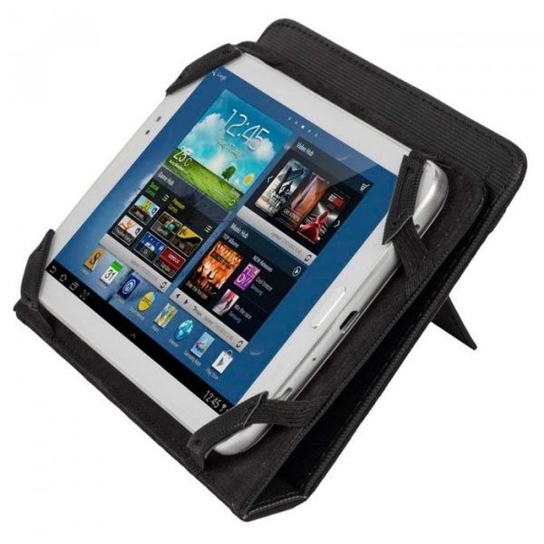 - Планшет фиксируется в одном положении в режиме просмотра с помощью специальной подставки. Подставка, когда не используется, удерживается на внутренней стороне чехла с помощью магнита, не царапая корпус планшета.