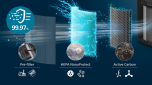 Трехслойная фильтрация, состоящая из фильтра предварительной очистки, HEPA NanoProtect и активного угля, улавливает 99,97% частиц размером до 0,003 микрона (4) – меньше, чем самый маленький известный вирус!