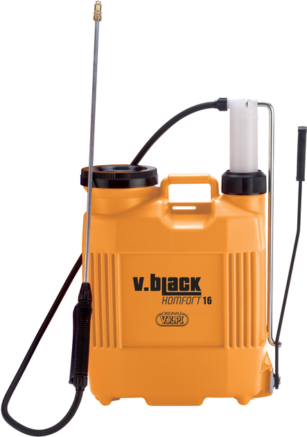 Насосный опрыскиватель Originale Volpi V-Black Komfort 16 л 9116KPC идеально подойдет для обработки участков площадью от 300 до 800 м². Используется в садоводстве для опрыскивания культур фитосанитарными продуктами, удобрениями и пестицидами, а также для дезинфекции и дезинсекции.