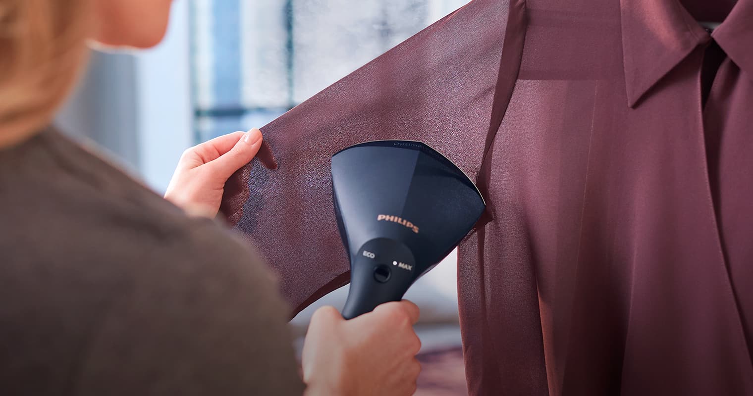 Компактный отпариватель 8000 Series быстро разглаживает складки на любой одежде и освежает ее.