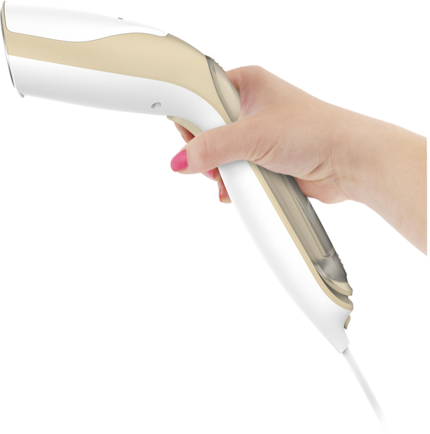Съемный резервуар объемом 75 мл удобно заполнять, а функция Drip-Stop предотвращает появление капель на ткани. Вертикальное отпаривание позволяет работать с вещами прямо на вешалке, не используя гладильную доску.