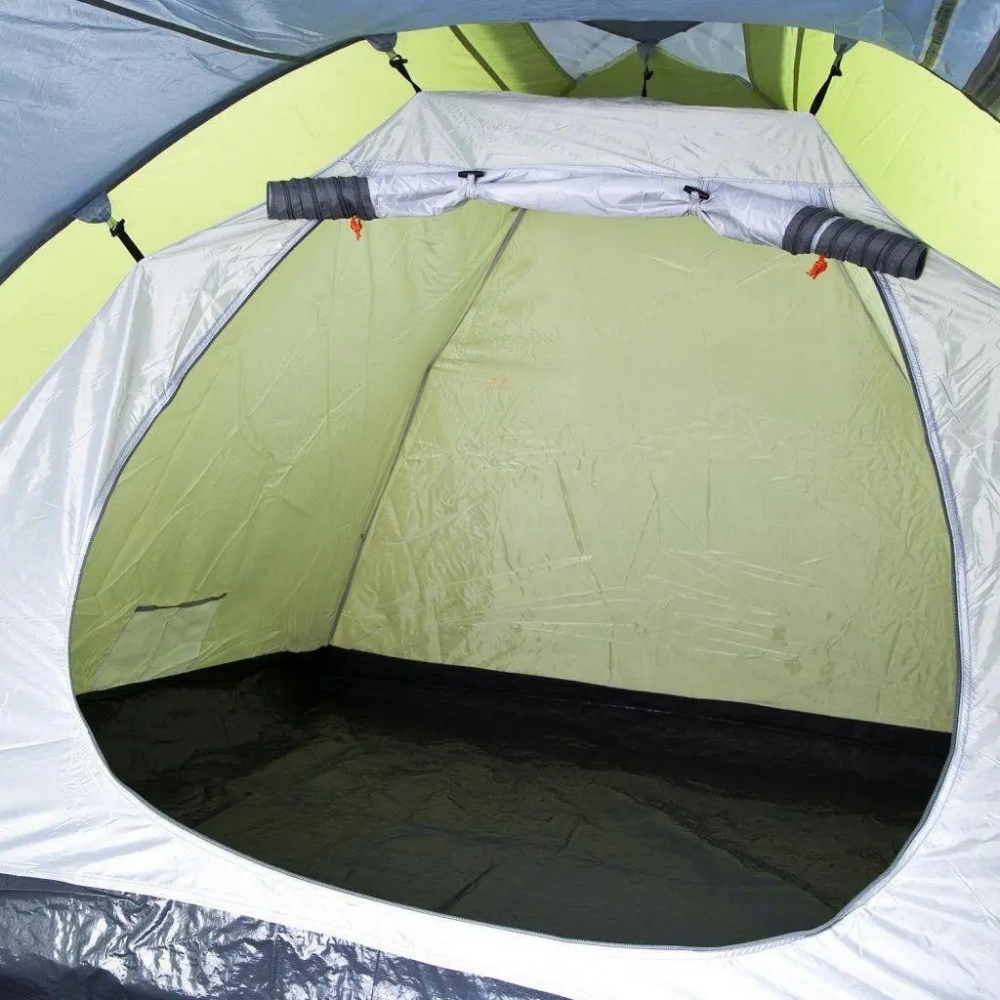 Палатка может похвастаться четырьмя возможными входами и большим вместительным тамбуром. В Solid 3 поместитесь не только вы, но и ваши вещи. Хоть палатка и рассчитана на трех человек, но, в случае необходимости, в ней можно поместиться вчетвером.Кемпинг Solid 3 может похвастаться хорошо продуманной системой вентиляции – внутренняя палатка выполнена из дышащего материала, а внешняя имеет два вентиляционных окна. Кроме того, можно открыть два входа внутренней палатки, оставив только противомоскитную сетку.