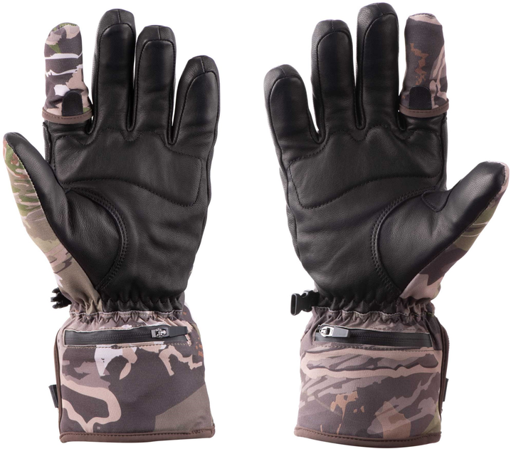 Особенностью продуманной модели является возможность регулировать температуру обогрева, не снимая перчаток с помощью встроенного контроллера со световым индикатором. Предусмотрены три уровня обогрева: высокий (3 светодиода) 60-65 °C – 2-2.5 часа; средний (2 светодиода) 50-55 °C – 4-4.5 час; низкий (1 светодиод) 40-45 °C – 8-9 час. Зонами обогрева являются кончики пальцев и тыльная сторона ладони.