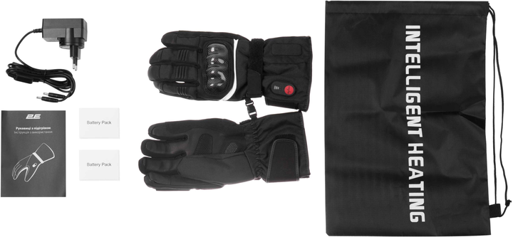 Перчатки имеют анатомическую форму для удобной посадки и контроля и не сковывают движения. Эластичная застежка на липучке обеспечивает плотное прилегание манжетов и делает невозможным вывих запястья. Питание нагревательного элемента происходит с помощью аккумуляторной батареи 7.4 В, 2200 мАч. В комплектации – зарядное устройство 8.4 В 1.5 А.
