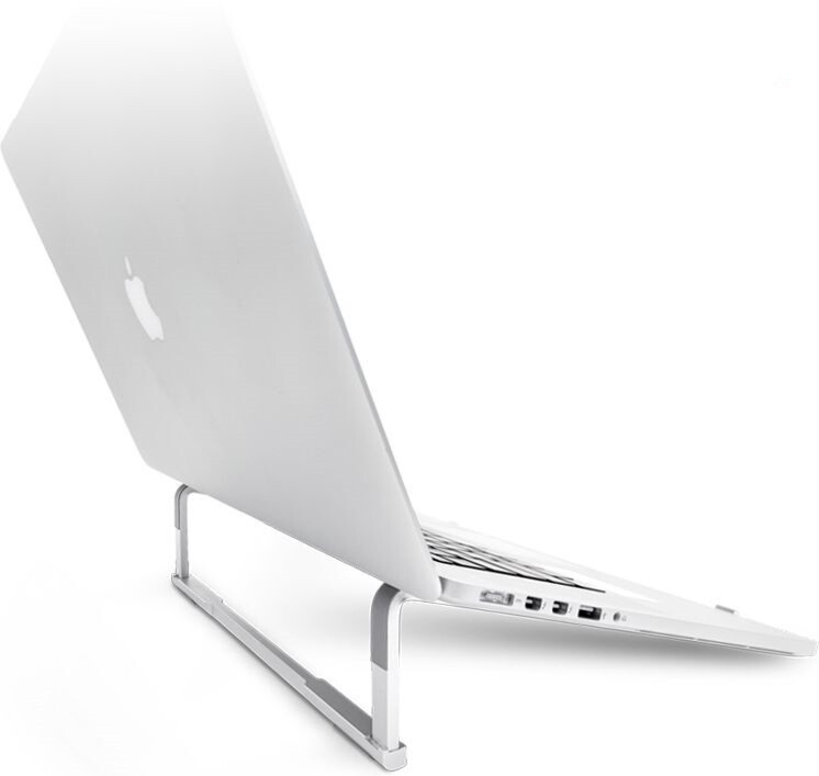Подставка представляет собой металлические опоры, на которых надежно фиксируется ноутбук. Ко всем поверхностям ноутбука, включая заднюю, обеспечивается свободный приток воздуха, происходит более быстрое охлаждение техники, и исключается перегрев даже при интенсивных нагрузках.