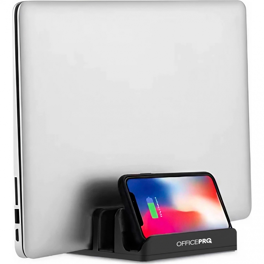 Вертикальная подставка OfficePro идеально подходит для хранения ноутбуков, телефонов и планшетов почти всех размеров.