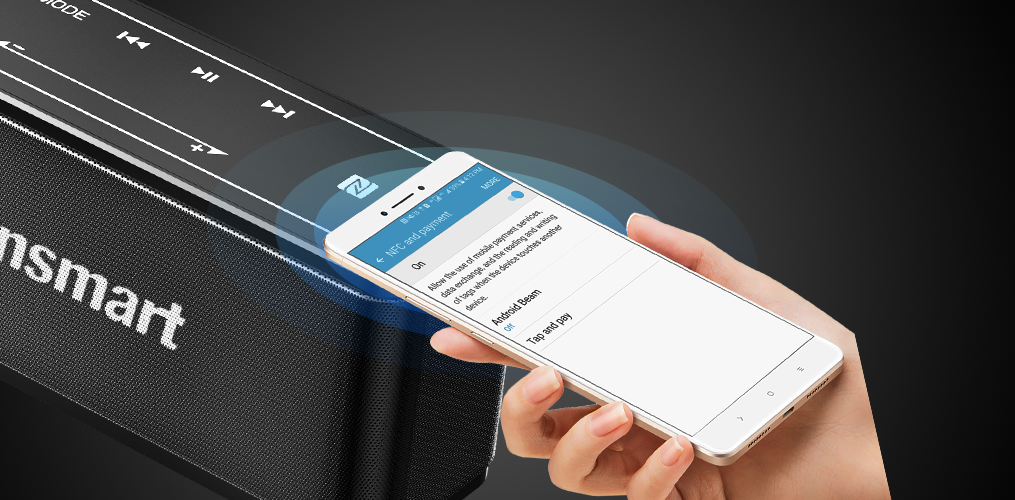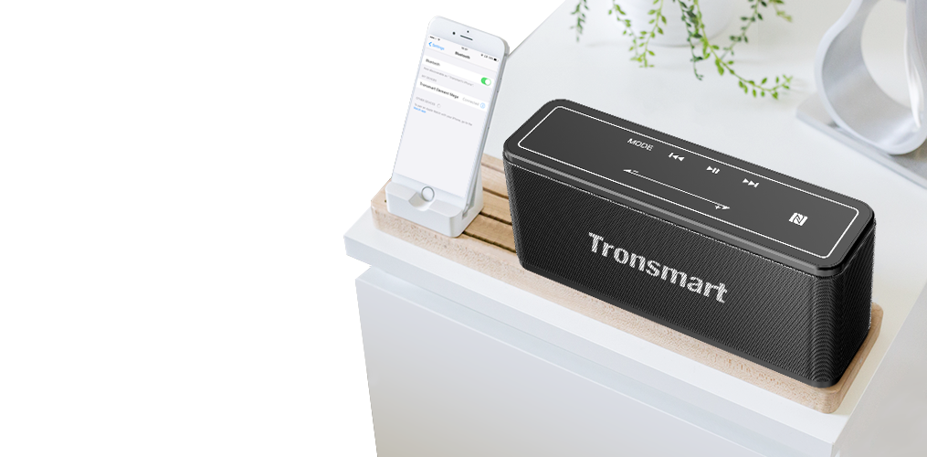 Не тратьте время для подключения и настройки вашей акустики. С колонкой Tronsmart вам совсем не потребуется прилагать усилий. Благодаря поддержке NFС и встроенному модулю Вluеtооth достаточно поднести смартфон к ее корпусу. Помимо беспроводного соединения, вы сможете воспользоваться кабелем AUX.