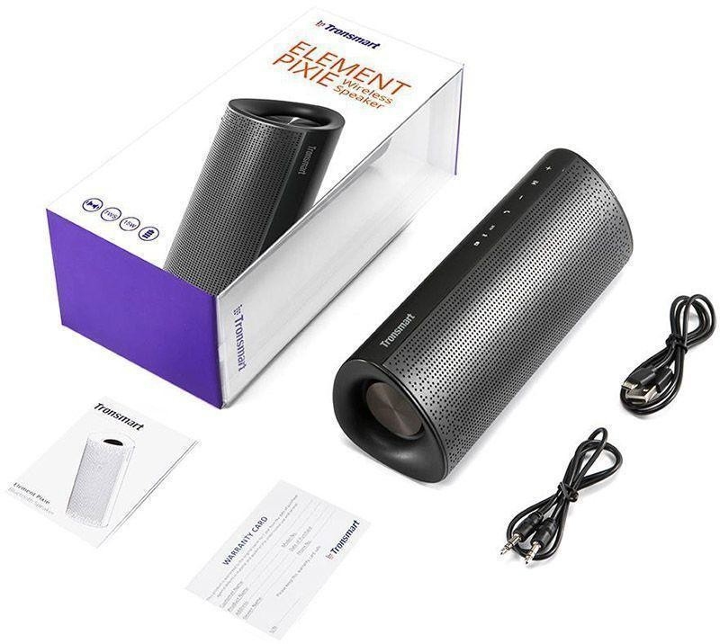 Качество звука Tronsmart Element Pixie Bluetooth Speaker оставляет приятные впечатления. Колонка имеет два встроенных сабвуфера высокой мощности, которые обеспечивают насыщенный бас. Во время прослушивания нет посторонних хрипов, шумов, звук чистый и громкий, что позволяет наслаждаться любимыми треками в полной мере. Данный Bluetooth спикер поддерживает функцию TWS (True Wireless Stereo), которая дает возможность подключать к источнику звука две колонки одновременно. Это удобно в тех случаях, когда необходимо значительно увеличить громкость воспроизведения.